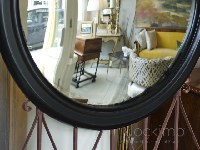 The above photo shows our Antique Silver mirror on convex glass with a black lacquer frame with gold leaf inner.