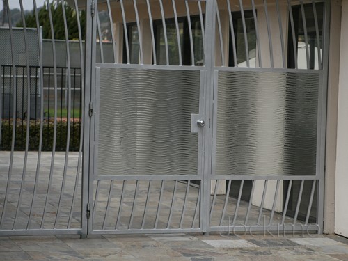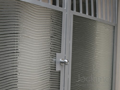 Jockimo's Phuket wave texture for this new club in La Jolla, CA. These exterior doors are made of metal and the Jockimo texture glass easily installs into the frames.