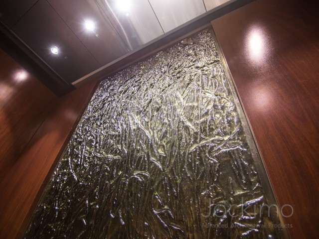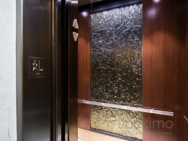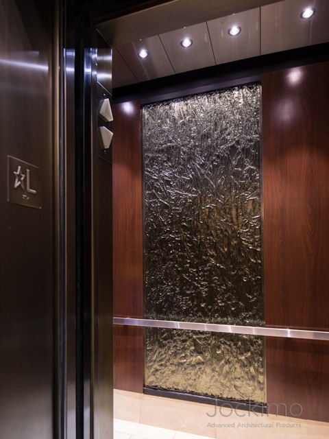 Client: Marbella Apartments - NJGlass: Cast glass Gorilla textureMarbella Apartments selected our Gorilla cast glass texture for their elevator cabs and lobby walls. The glass is all 3/8" thick bronze glass and is tempered for safety.