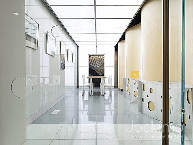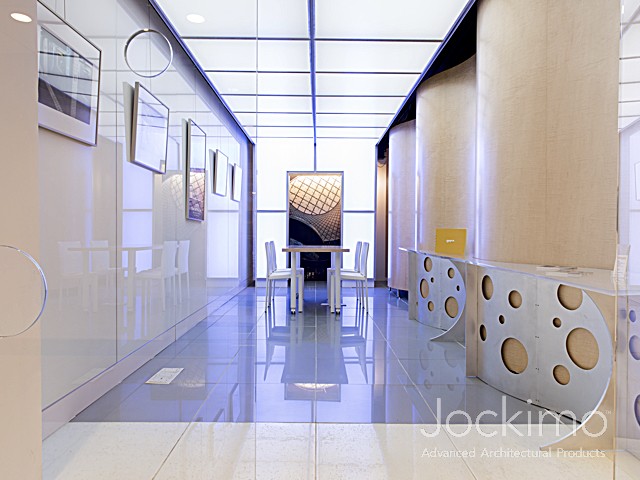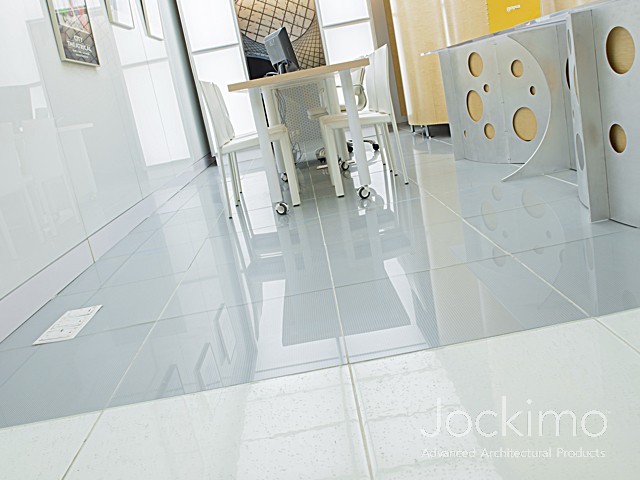 Jockimo's New York Design Center location showcases numerous glass flooring options.