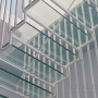 The glass is supported on the ends only and was engineered for safe deflection by Jockimo.