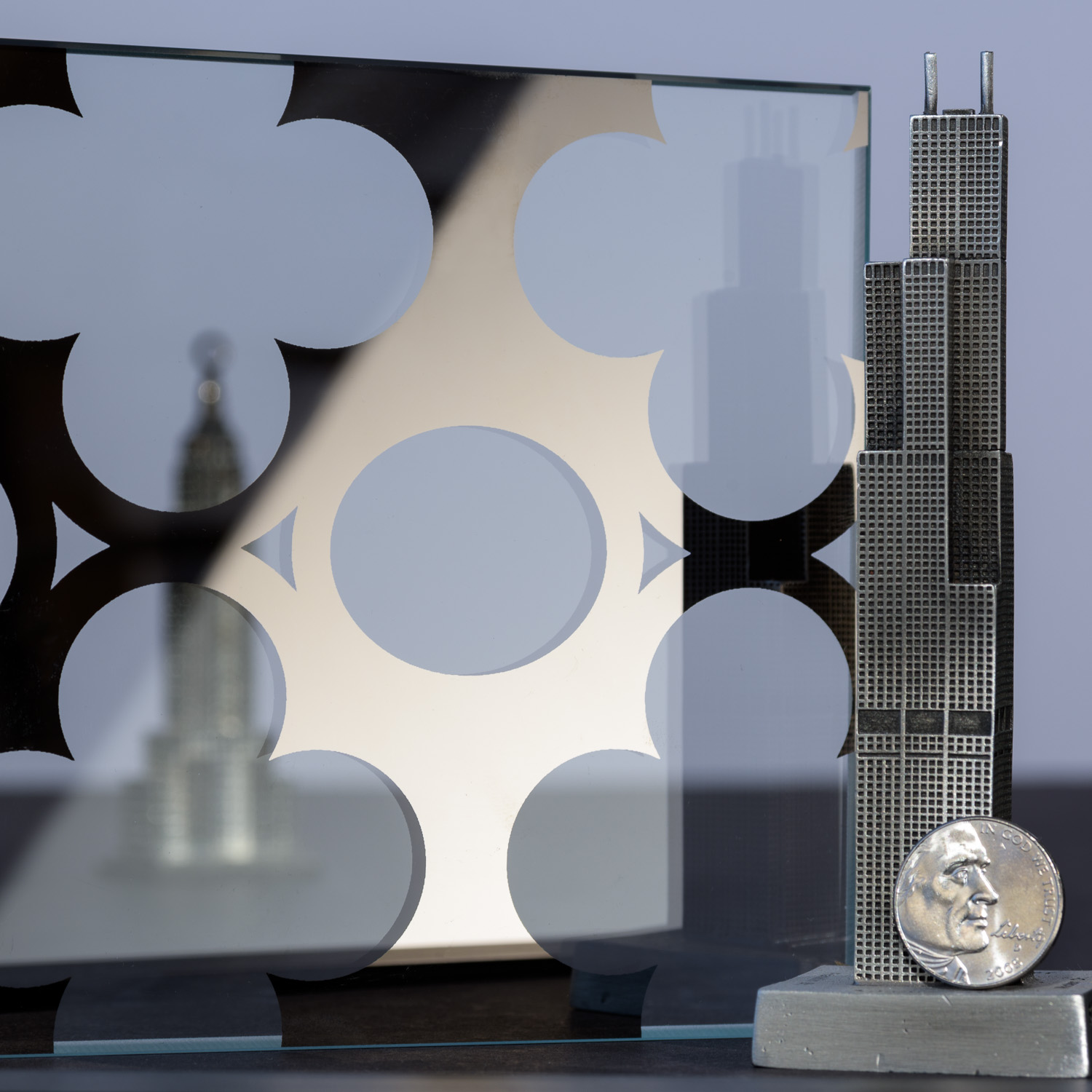 Jockimo's exclusive new Heavy Metal Glass will please both interiors designers and metal heads alike. Available in both Gold and Platinum this transparent glass is the next hot interior glass product. We offer the ability to customize designs as well! This state-of-the-art product is a safety glass too - it can be cut, polished, laminated and/or tempered to meet local safety requirements.